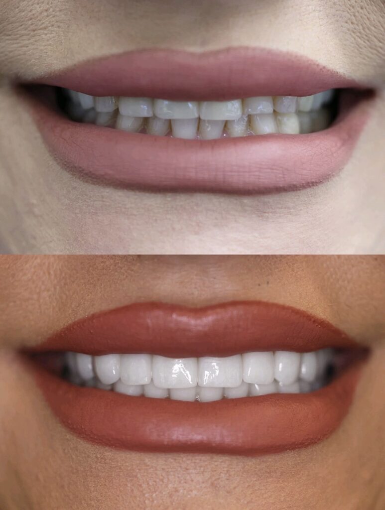 Before and after dental veneer procedure in Newport Beach